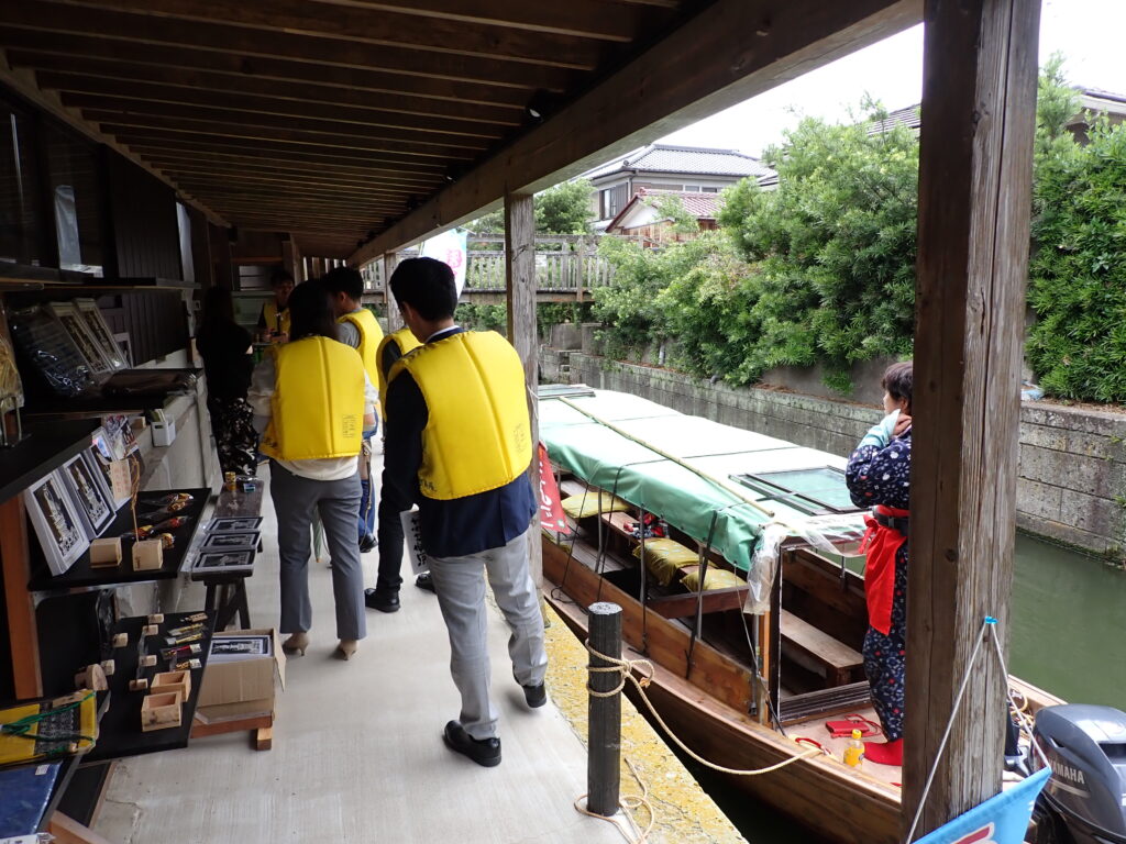 友好都市・兵庫県川西市の市長さんが、香取市の伊藤市長さんと一緒に加藤洲十二橋めぐりを楽しみ、その途中で舟で河童はうすに立ち寄ってくださいました。